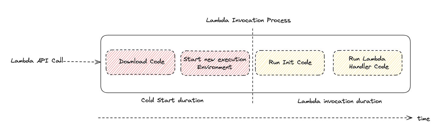 In other words, a cold start occurs when AWS Lambda is not available to use because it is busy setting up the required environments.