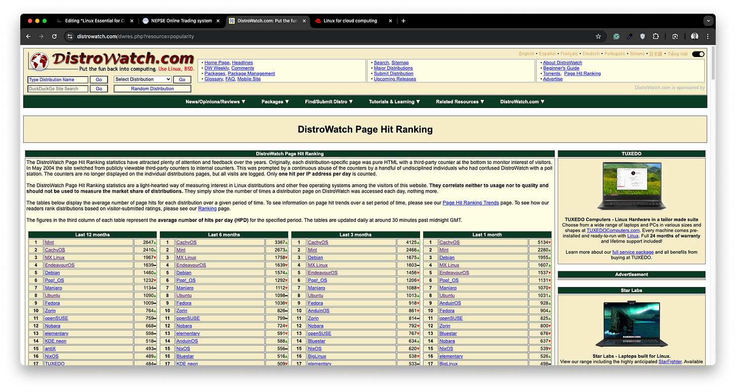 Debian: Known for stability and security, often used as a base for other distributions. Popular for servers that need long-term reliability.