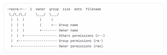 chmod 755 script.sh # rwxr-xr-x (owner: rwx, group: r-x, others: r-x)