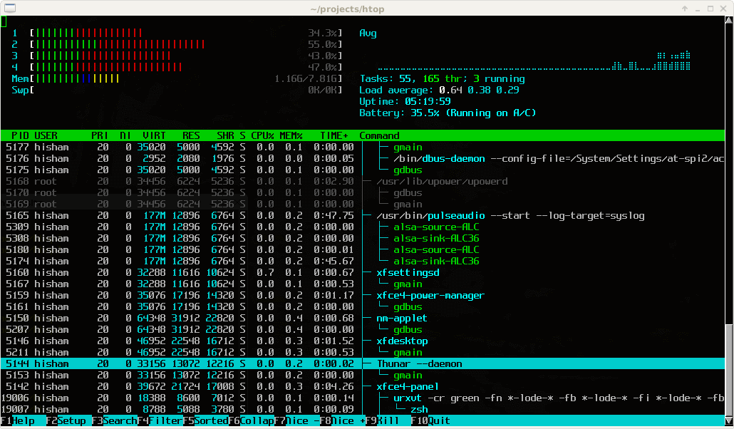 # Use arrow keys to navigate, F9 to kill, F10 to quitfree - Memory Usage:
